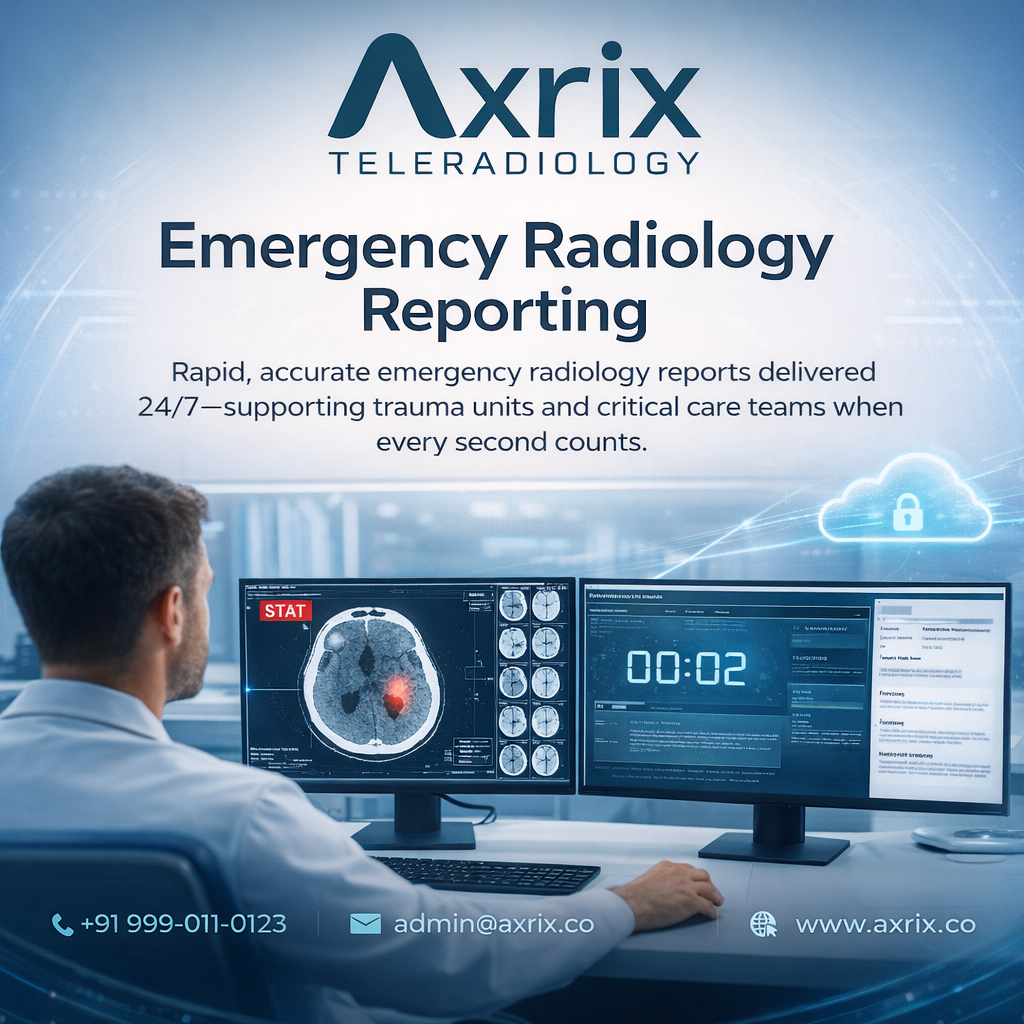 AXRIX provides specialized emergency radiology reporting services to hospitals, trauma centers, and emergency departments that require immediate interpretation of diagnostic imaging. Our services ensure accurate and timely reporting during critical medical situations, helping clinicians respond quickly to urgent conditions.