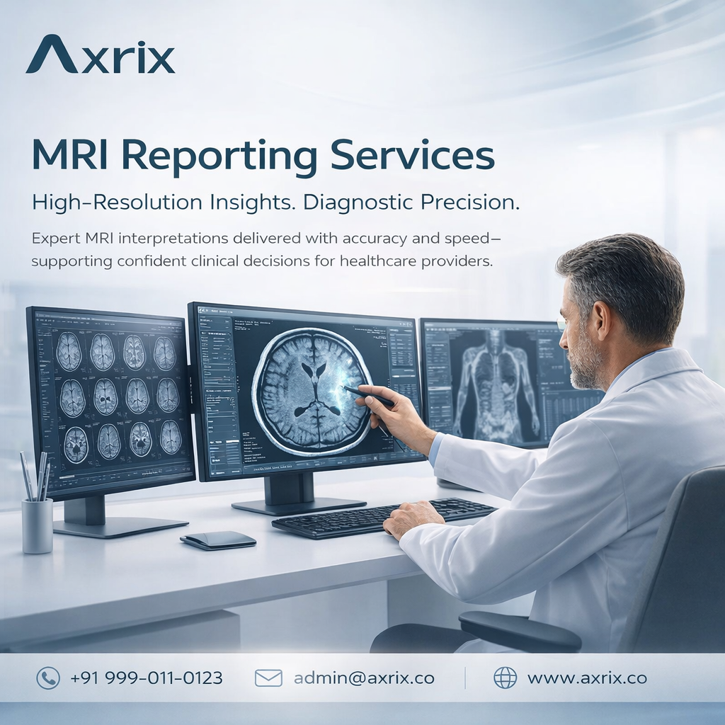 AXRIX delivers specialized MRI reporting services to hospitals, diagnostic imaging centers, and healthcare organizations requiring precise interpretation of high-resolution magnetic resonance imaging studies. Our services focus on anatomical detail, clinical relevance, and diagnostic clarity.